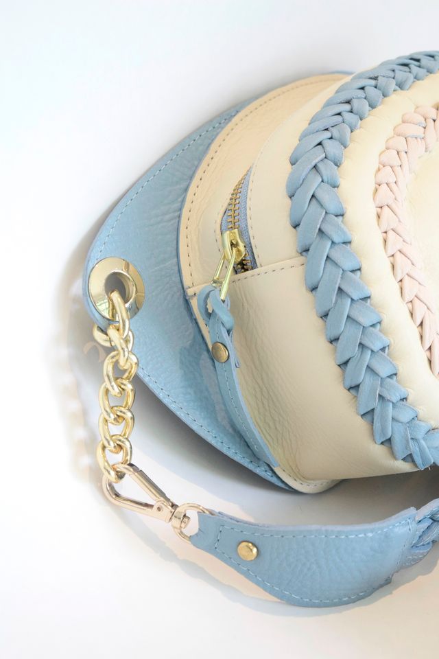 - Riño/bandolera semi rígida, en 100% cuero vacuno.